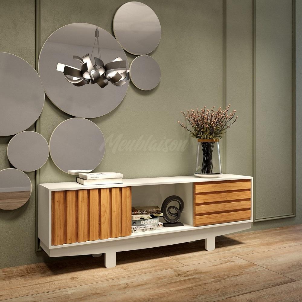 Avec un design contemporain ce meuble robuste, et solide composé de deux battants coulissant de gauche vers la droite et inversement est le meuble parfait pour votre salon avec son plateau de 35 cm pouvant supporté un téléviseur de 65 pouces, Dimensions(lxLxH): 180 cm x 60 cm x 35 cm